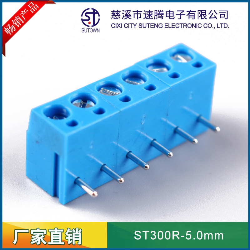 Spacing:5.0mm Material and Plating Plastic parts;PA66,UL94V-0 Welding needle:Brass,Tin plating Screw:M2.5,Steel,zinc Plating Square box:Brass,Nickel plating Electrical performance Rated voltage:300V Rated current:10A Contact resistance:20mΩ Insulation resistance:5000MΩ/1000v Wire diameter:22-14AWG 2.5mm2 Withstanding Voltage:AC1500V/1Min Mechanical properties Ambient temperature:-30℃~+120℃ MAX Soldering:+250℃,5s Torque:0.5Nm Strip length:4.5-5mm