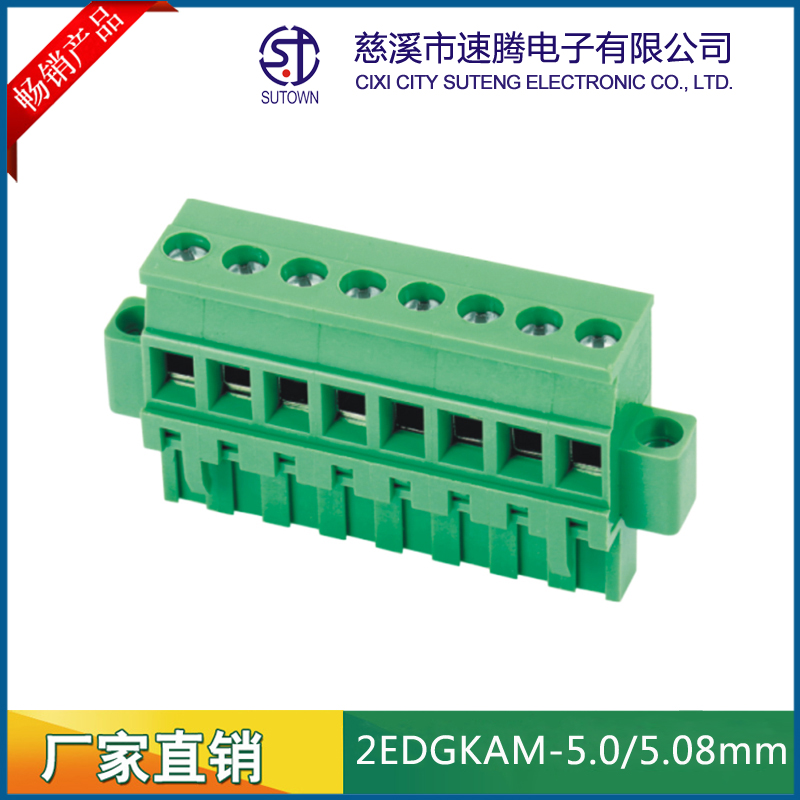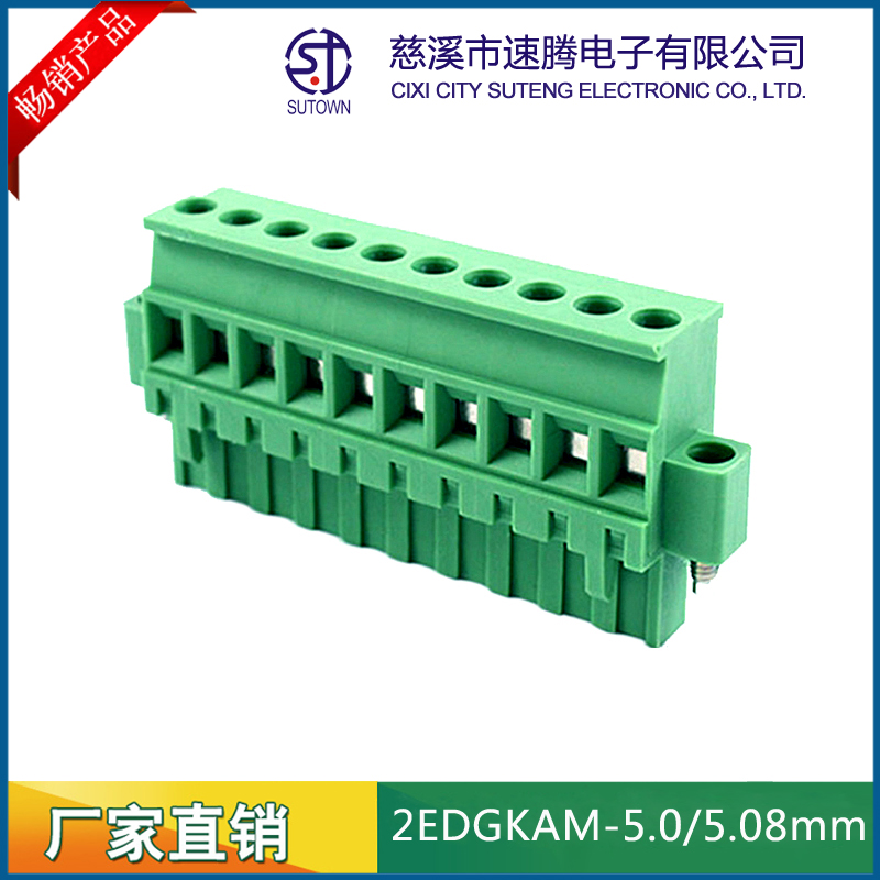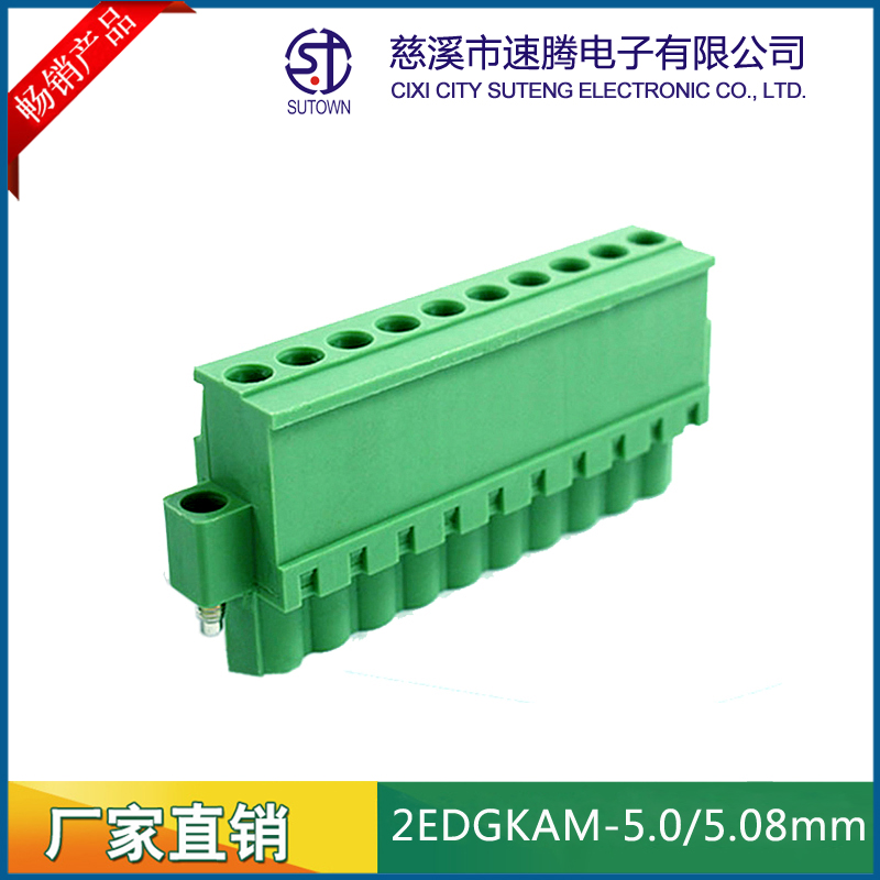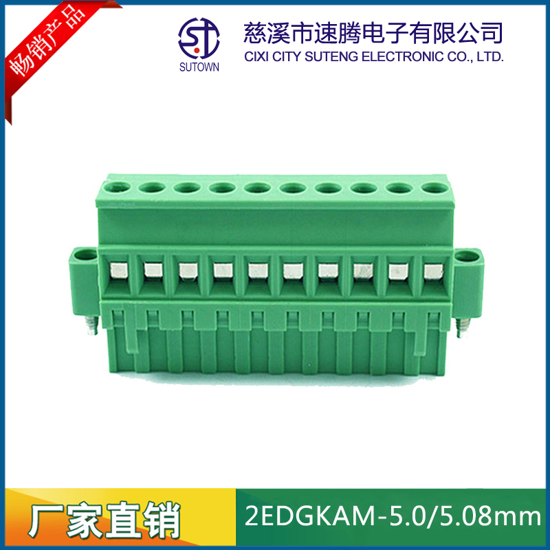 Material and Plating Spacing:5.0/5.08mm Plastic parts;PA66,UL94V-0 Cage:Brass,Tin plating Screw:M2.0,Steel,Zn Plating Terminal:Phosphor bronze,Nickel plating Electrical performance Rated voltage:300V Rated current:15A Ambient temperature:-40℃~+105℃ MAX Soldering:+250℃,5s Withstanding Voltage:AC2500V/1Min Contact resistance:20mΩ Insulation resistance:5000MΩ/1000V Wire diameter:28-16AWG 1.5mm2 Torque:0.4Nm Strip length:7-8mm