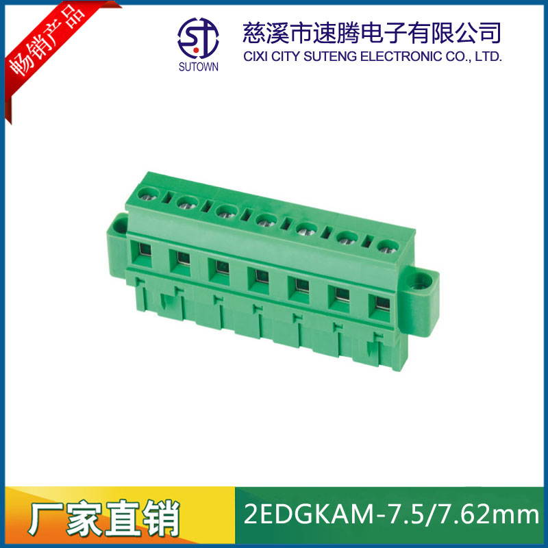 Material and Plating Spacing:7.5/7.62mm Plastic parts;PA66,UL94V-0 Cage:Brass,Tin plating Screw:M2.0,Steel,Zn Plating Terminal:Phosphor bronze,Nickel plating Electrical performance Rated voltage:300V Rated current:15A Mechanical properties Ambient temperature:-40℃~+105℃ MAX Soldering:+250℃,5s Withstanding Voltage:AC2500V/1Min Contact resistance:20mΩ Insulation resistance:5000MΩ/1000V Wire diameter:28-16AWG 1.5mm2 Torque:0.4Nm Strip length:7-8mm