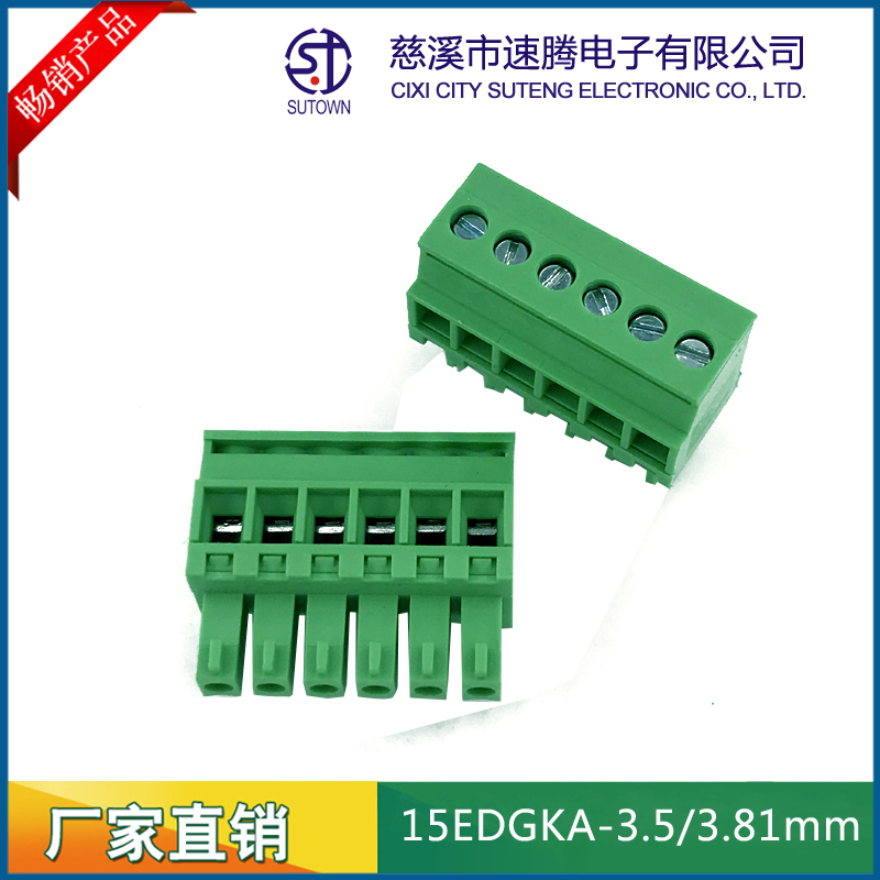 Material and Plating Spacing:3.5/3.81mm Plastic parts;PA66,UL94V-0 Cage:Brass,Tin plating Screw:M2,Steel,Zn Plating Contact material:Phosphor bronze,Nickel plating Electrical performance Rated voltage:300V Rated current:8A Ambient temperature:-40℃~+105℃ MAX Soldering:+250℃,5s Contact resistance:20mΩ Insulation resistance:5000MΩ/1000V Withstanding Voltage:AC1500V/1Min Wire diameter:28-16AWG 1.5mm2 Torque:0.4Nm Strip length:7-8mm