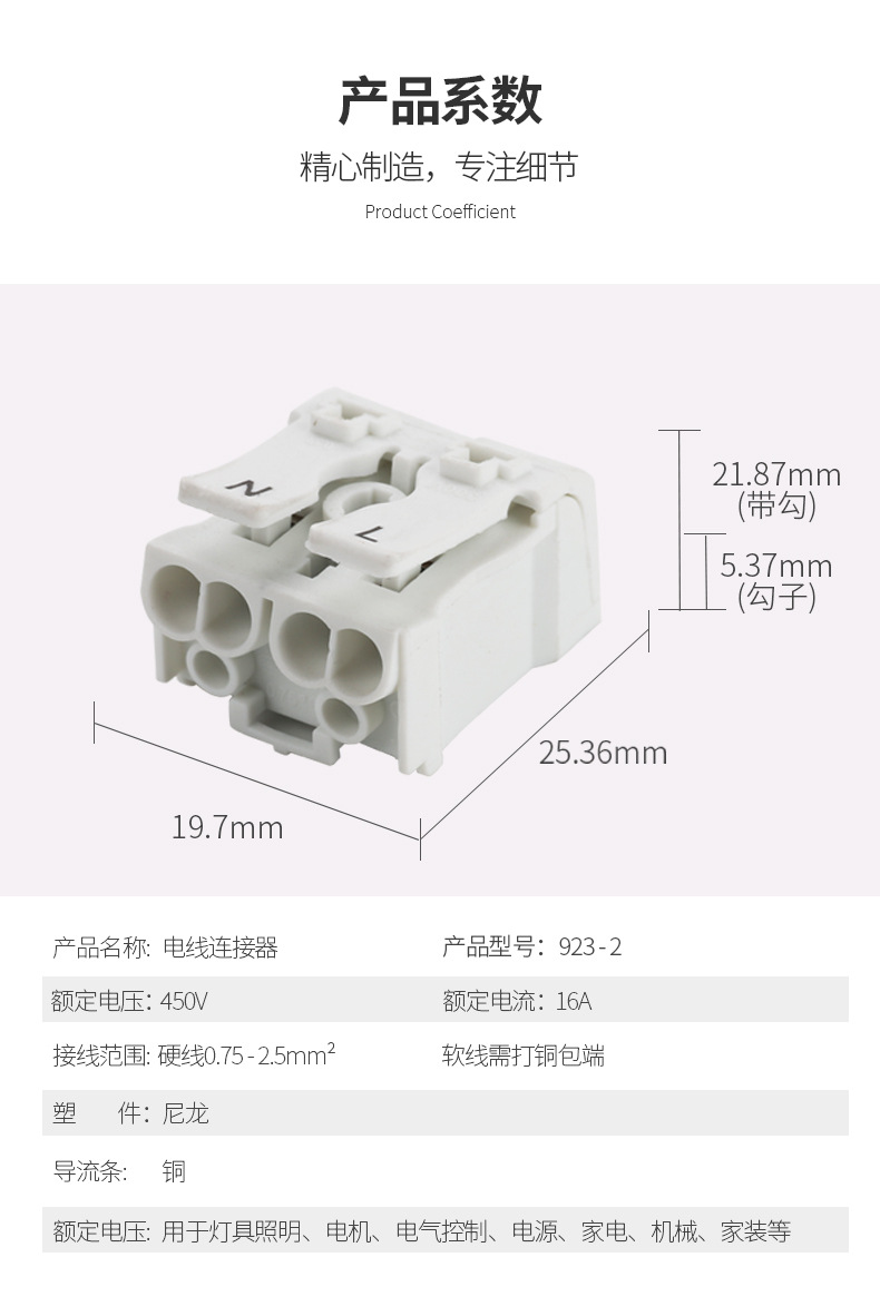 適用導(dǎo)線:軟硬導(dǎo)線  0.75-2.5mm^2