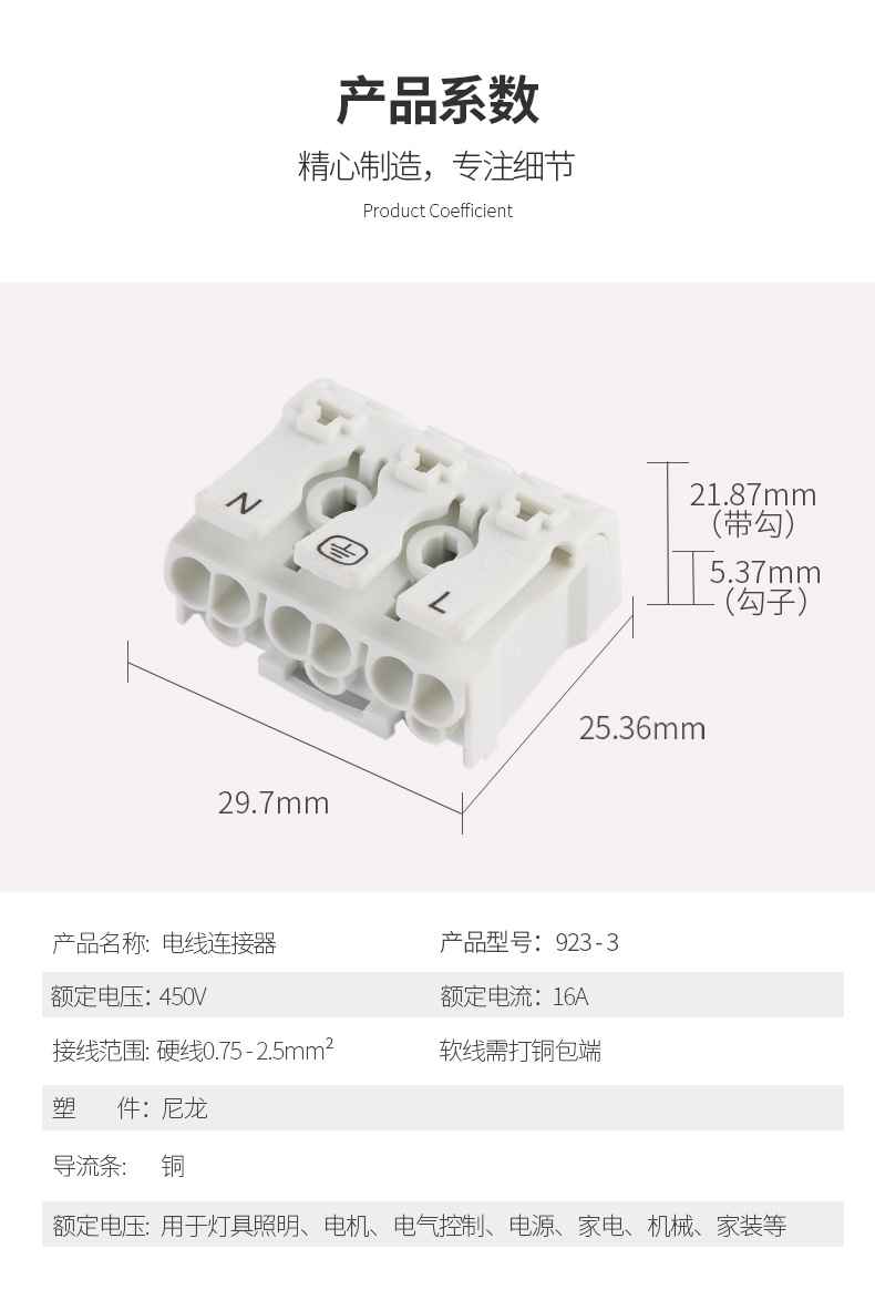 適用導(dǎo)線(xiàn):軟硬導(dǎo)線(xiàn)  0.75-2.5mm^2